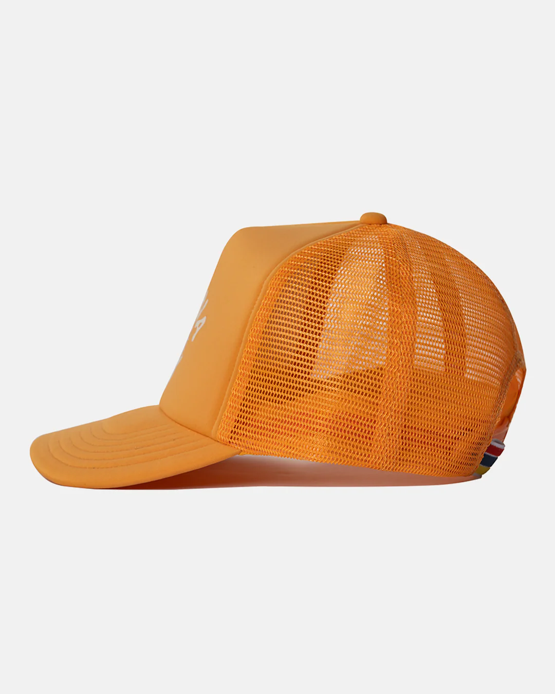 A graphic that nods to all the places surf can take you (everywhere) on a hat once worn primarily by truck drivers, now worn by anyone who like a breeze on the back of their head.