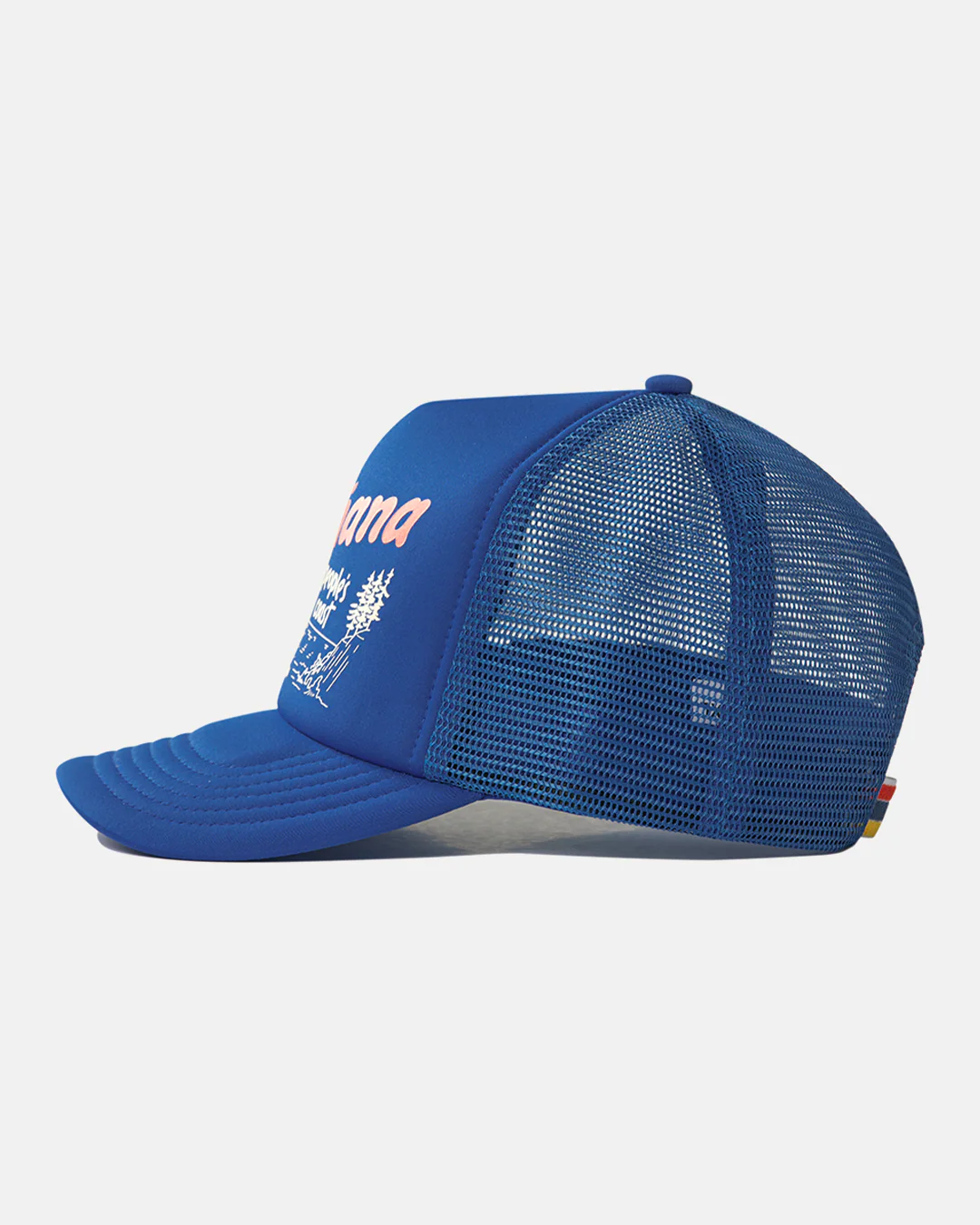 They call it a people's coast for the reason: the coastline is public-protected. Water for the people - that's something we believe in. This graphic is an homage to that spirit, and the coast itself. Screen printed on a classic high crown foam trucker.